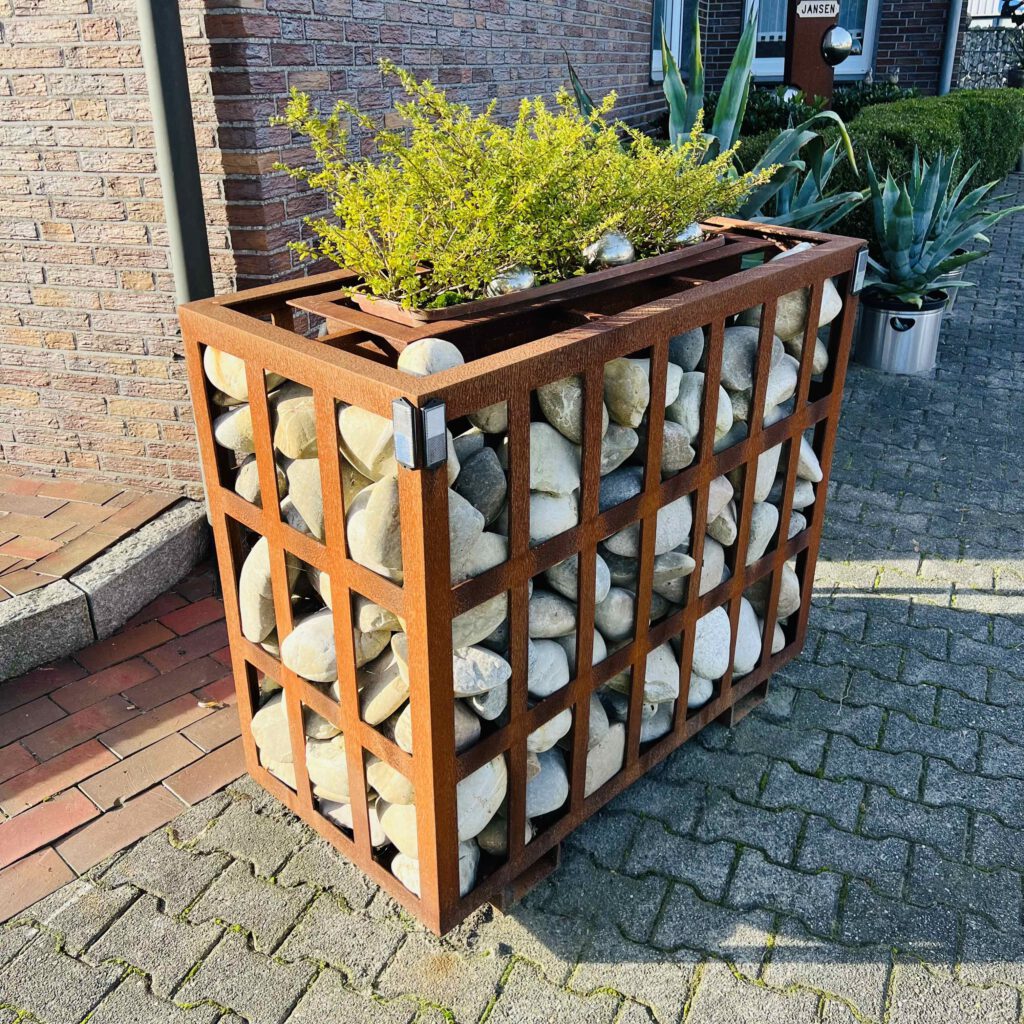 Schlicht, robust und authentisch – unser handgefertigter Stein- und Blumentopf-Behälter wird aus unbehandeltem Stahl gefertigt und entwickelt im Laufe der Zeit eine charaktervolle Rostoptik. Jedes Stück ist ein Unikat und spiegelt den natürlichen Charme von Rohstahl wider.